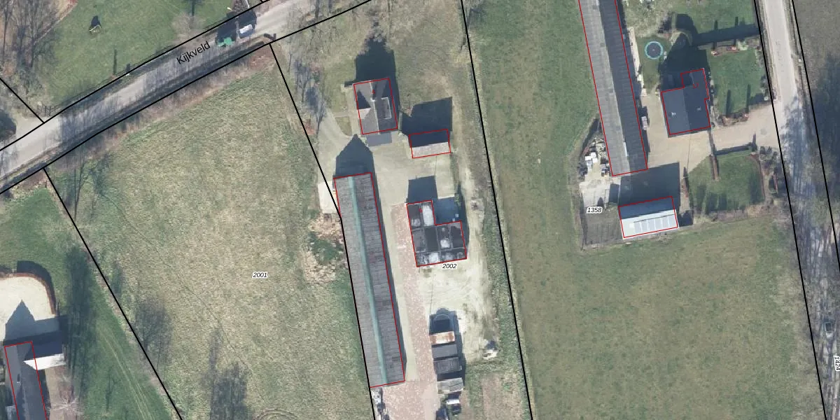 Het perceel waarop Kijkveld 6 staat heeft een oppervlakte van 4490 m². Dit is een zeer groot perceel. De perceeloppervlakte wordt geregistreerd door het Kadaster. Gedetailleerde informatie over de maten van dit perceel kunt u vinden in het rapport Kadastrale kaart met maatvoering van Kijkveld 6.
