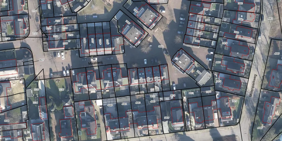 Het perceel waarop Maalderij 12 staat heeft een oppervlakte van 96 m². Dit is een klein perceel. De perceeloppervlakte wordt geregistreerd door het Kadaster. Gedetailleerde informatie over de maten van dit perceel kunt u vinden in het rapport Kadastrale kaart met maatvoering van Maalderij 12.