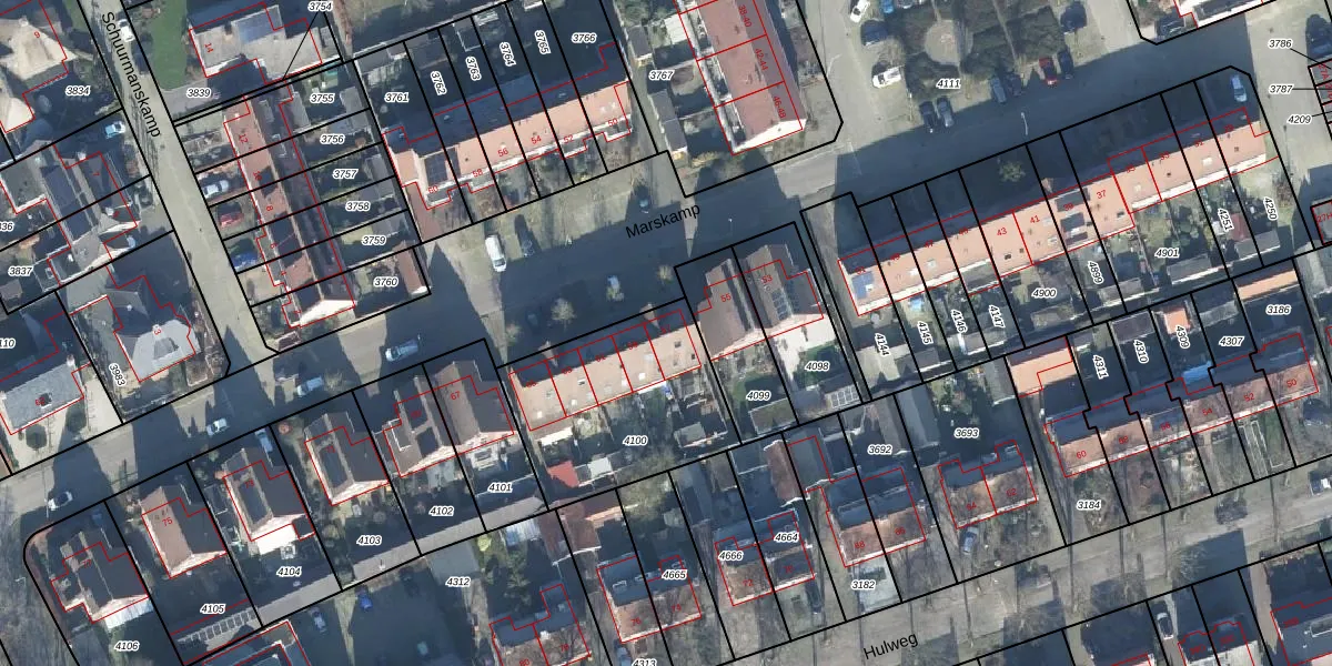 Het perceel waarop Marskamp 57 staat heeft een oppervlakte van 713 m². Dit is een groot perceel. De perceeloppervlakte wordt geregistreerd door het Kadaster. Gedetailleerde informatie over de maten van dit perceel kunt u vinden in het rapport Kadastrale kaart met maatvoering van Marskamp 57.