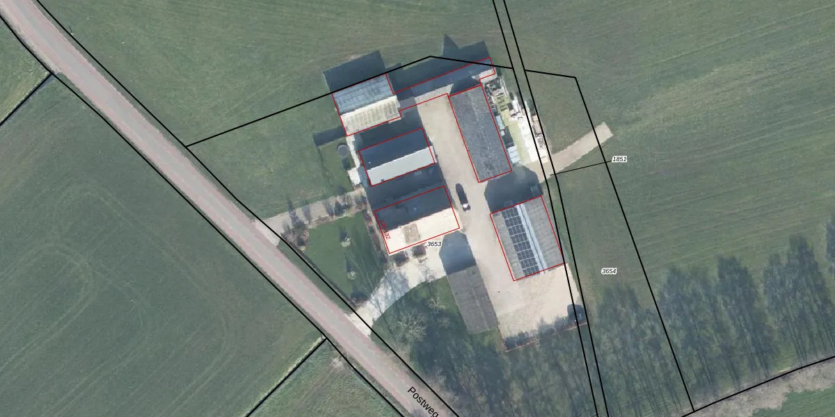 Het perceel waarop Postweg 132 staat heeft een oppervlakte van 5200 m². Dit is een zeer groot perceel. De perceeloppervlakte wordt geregistreerd door het Kadaster. Gedetailleerde informatie over de maten van dit perceel kunt u vinden in het rapport Kadastrale kaart met maatvoering van Postweg 132.