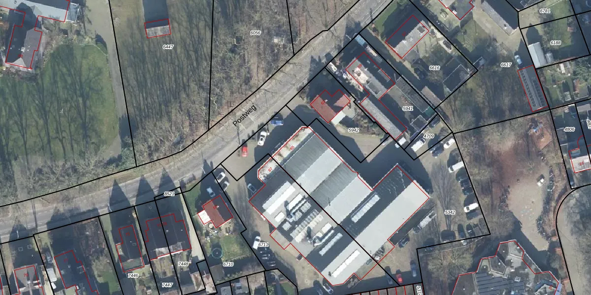 Het perceel waarop Postweg 65 staat heeft een oppervlakte van 2360 m². Dit is een zeer groot perceel. De perceeloppervlakte wordt geregistreerd door het Kadaster. Gedetailleerde informatie over de maten van dit perceel kunt u vinden in het rapport Kadastrale kaart met maatvoering van Postweg 65.