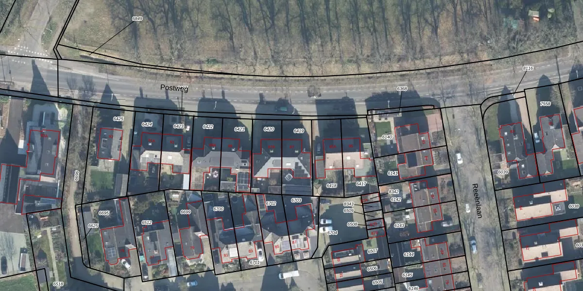 Gebruik de zoekbalk of klik op een perceel voor informatie over de adressen binnen dit perceel.
