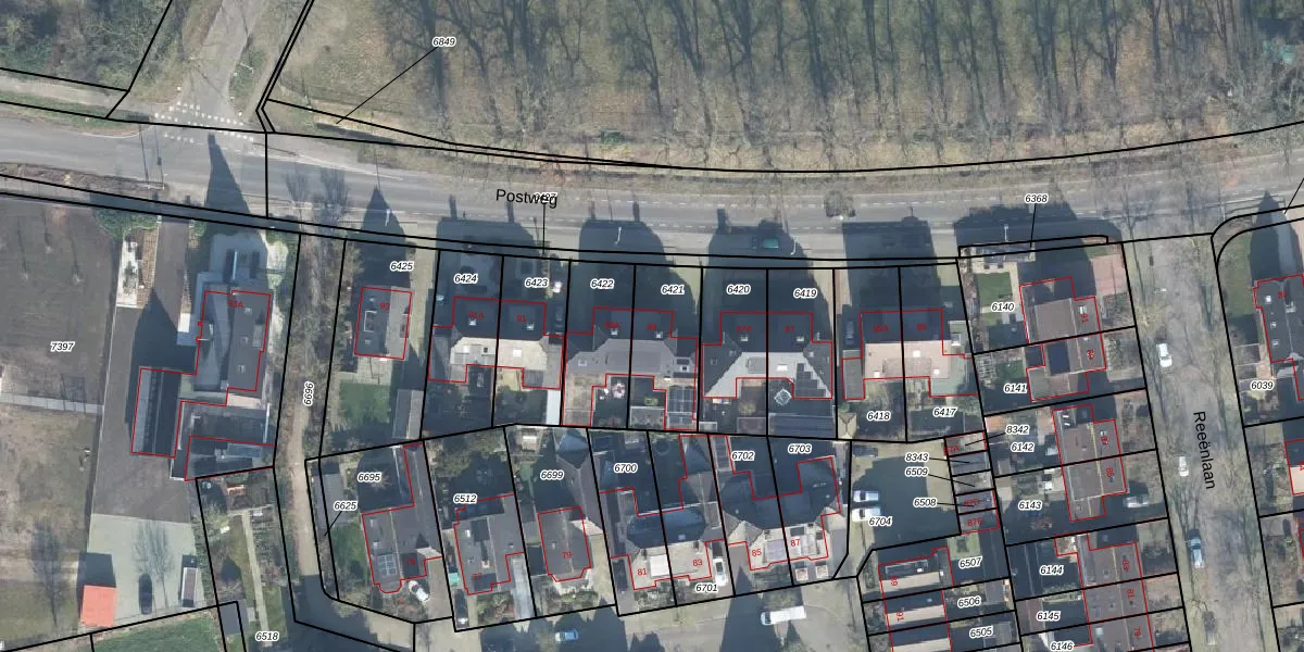 Gebruik de zoekbalk of klik op een perceel voor informatie over de adressen binnen dit perceel.
