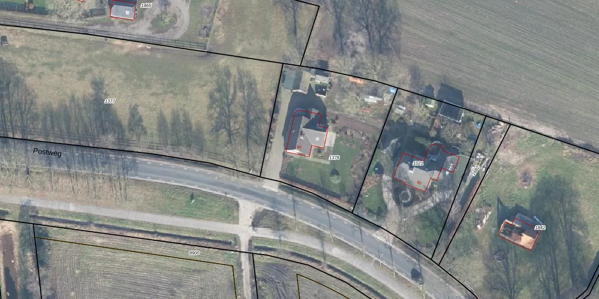 Het perceel waarop Postweg 94 staat heeft een oppervlakte van 1380 m². Dit is een zeer groot perceel. De perceeloppervlakte wordt geregistreerd door het Kadaster. Gedetailleerde informatie over de maten van dit perceel kunt u vinden in het rapport Kadastrale kaart met maatvoering van Postweg 94.