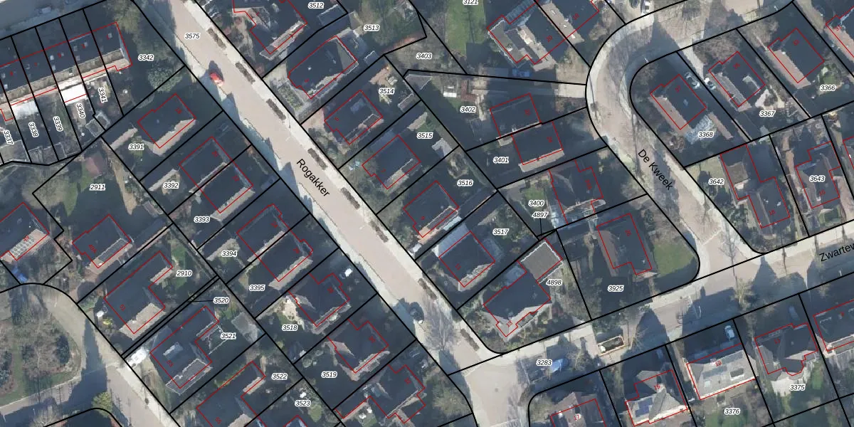 Het perceel waarop Rogakker 9 staat heeft een oppervlakte van 355 m². Dit is een groot perceel. De perceeloppervlakte wordt geregistreerd door het Kadaster. Gedetailleerde informatie over de maten van dit perceel kunt u vinden in het rapport Kadastrale kaart met maatvoering van Rogakker 9.