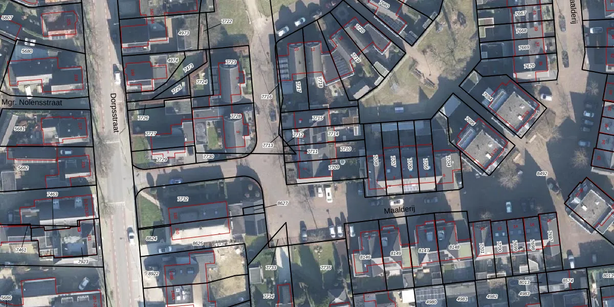 Het adres is gelegen op perceel 7710 in de sectie K en de kadastrale gemeente Lunteren. De kadastrale aanduiding is aldus LTR00-K-7710. De gemiddelde perceelgrootte in Lunteren is 4969,27 m². Dit perceel is kleiner: de perceeloppervlakte bedraagt 136 m². Het kleinste perceel in de kadastrale gemeente is 0 m² groot. De grootste perceeloppervlakte is 42,6 ha. Er zijn geen andere adressen aanwezig op het perceel. De laatste wijziging in het de Basisregistratie Kadaster (BRK) was op 08-11-2011.