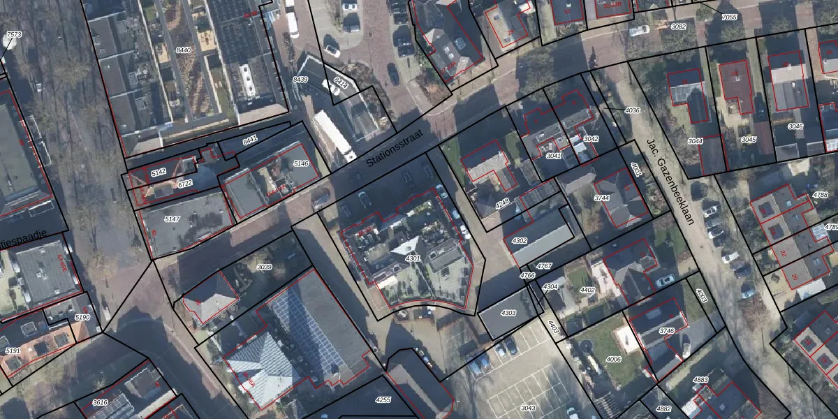 Het perceel waarop Stationsstraat 2-B staat heeft een oppervlakte van 980 m². Dit is een groot perceel. De perceeloppervlakte wordt geregistreerd door het Kadaster. Gedetailleerde informatie over de maten van dit perceel kunt u vinden in het rapport Kadastrale kaart met maatvoering van Stationsstraat 2-B.