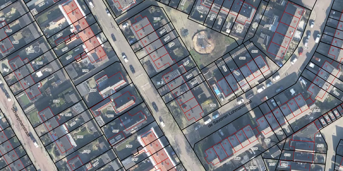 Het perceel waarop het adres ligt is LTR00-K-7348. De afkorting 'LTR00' staat voor kadastrale gemeente Lunteren. Het perceel is kleiner dan gemiddeld in Lunteren. Het perceel is 136 m² groot, terwijl het gemiddelde ligt op 4969,75 m². Het kleinste perceel in de kadastrale gemeente is 0 m² groot. De grootste perceeloppervlakte is 42,6 ha. Dit is het enige adres dat aanwezig is op het perceel. De laatste wijziging in het de Basisregistratie Kadaster (BRK) was op 06-12-2007.