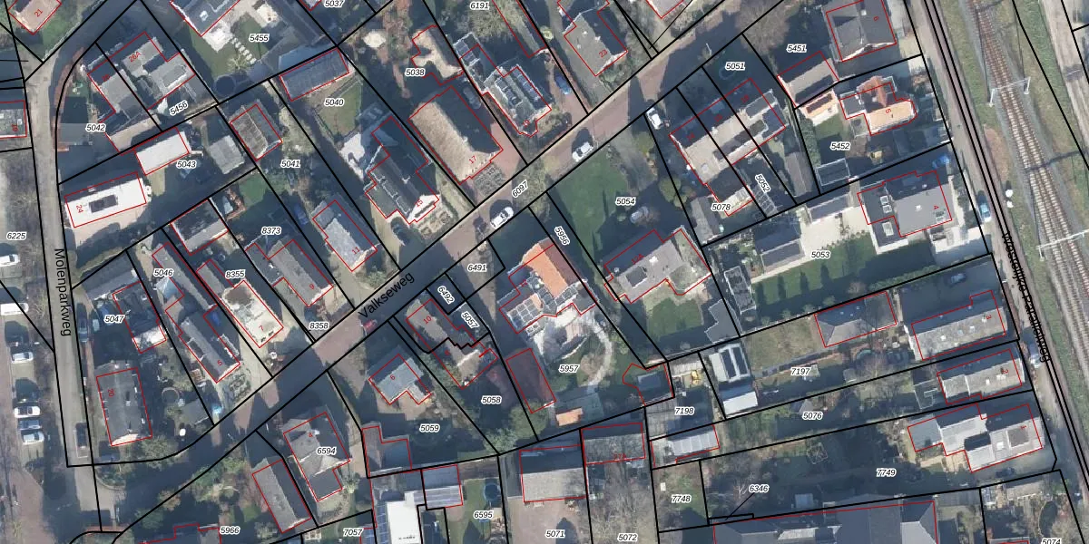 Het perceel waarop Valkseweg 12 staat heeft een oppervlakte van 780 m². Dit is een groot perceel. De perceeloppervlakte wordt geregistreerd door het Kadaster. Gedetailleerde informatie over de maten van dit perceel kunt u vinden in het rapport Kadastrale kaart met maatvoering van Valkseweg 12.