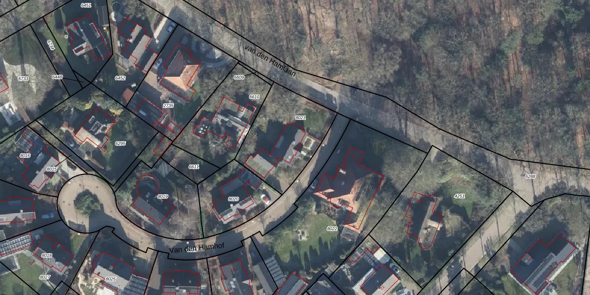 Het perceel waarop Van den Hamhof 1 staat heeft een oppervlakte van 715 m². Dit is een groot perceel. De perceeloppervlakte wordt geregistreerd door het Kadaster. Gedetailleerde informatie over de maten van dit perceel kunt u vinden in het rapport Kadastrale kaart met maatvoering van Van den Hamhof 1.
