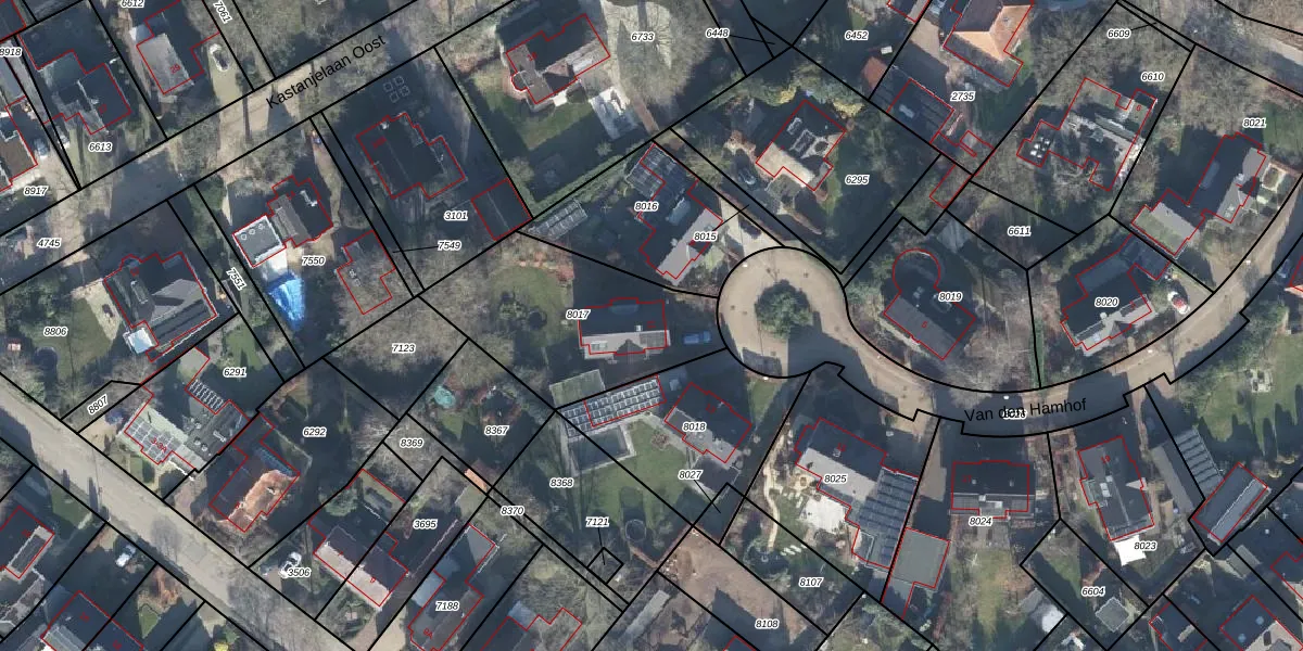 Het perceel waarop Van den Hamhof 11 staat heeft een oppervlakte van 720 m². Dit is een groot perceel. De perceeloppervlakte wordt geregistreerd door het Kadaster. Gedetailleerde informatie over de maten van dit perceel kunt u vinden in het rapport Kadastrale kaart met maatvoering van Van den Hamhof 11.