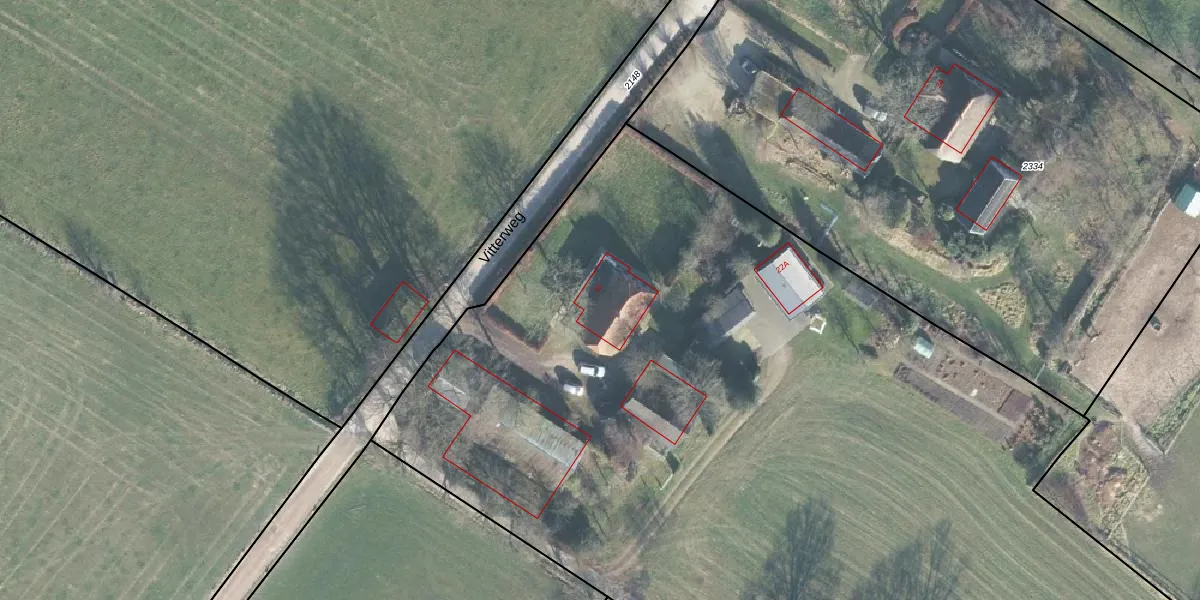 Het perceel waarop Vitterweg 22 staat heeft een oppervlakte van 1,1 ha. Dit is een zeer groot perceel. De perceeloppervlakte wordt geregistreerd door het Kadaster. Gedetailleerde informatie over de maten van dit perceel kunt u vinden in het rapport Kadastrale kaart met maatvoering van Vitterweg 22.