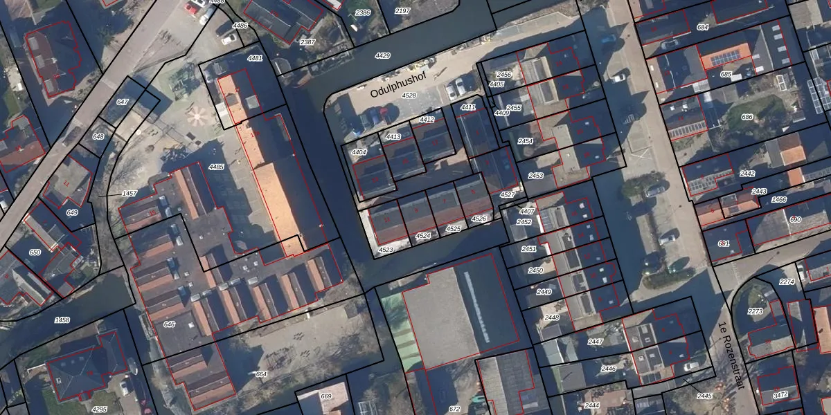 Het perceel waarop Odulphushof 9 staat heeft een oppervlakte van 87 m². Dit is een klein perceel. De perceeloppervlakte wordt geregistreerd door het Kadaster. Gedetailleerde informatie over de maten van dit perceel kunt u vinden in het rapport Kadastrale kaart met maatvoering van Odulphushof 9.