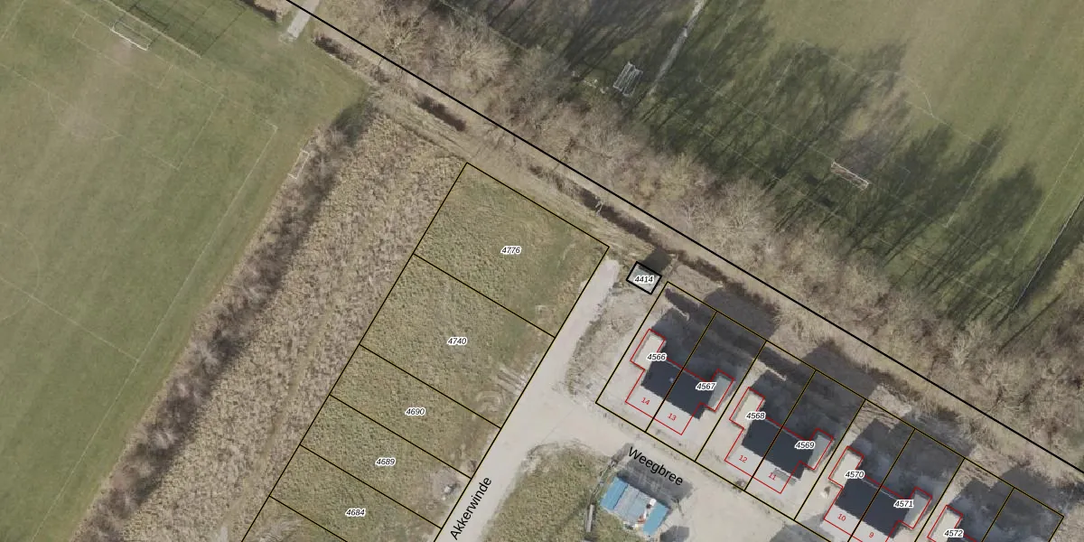 Het perceel waarop Akkerwinde 13 staat heeft een oppervlakte van 594 m². Dit is een groot perceel. De perceeloppervlakte wordt geregistreerd door het Kadaster. Gedetailleerde informatie over de maten van dit perceel kunt u vinden in het rapport Kadastrale kaart met maatvoering van Akkerwinde 13.