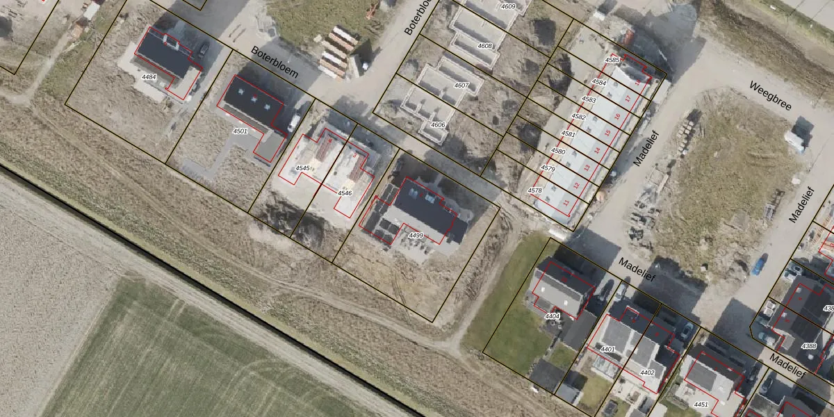 Het perceel waarop Boterbloem 2 staat heeft een oppervlakte van 895 m². Dit is een groot perceel. De perceeloppervlakte wordt geregistreerd door het Kadaster. Gedetailleerde informatie over de maten van dit perceel kunt u vinden in het rapport Kadastrale kaart met maatvoering van Boterbloem 2.