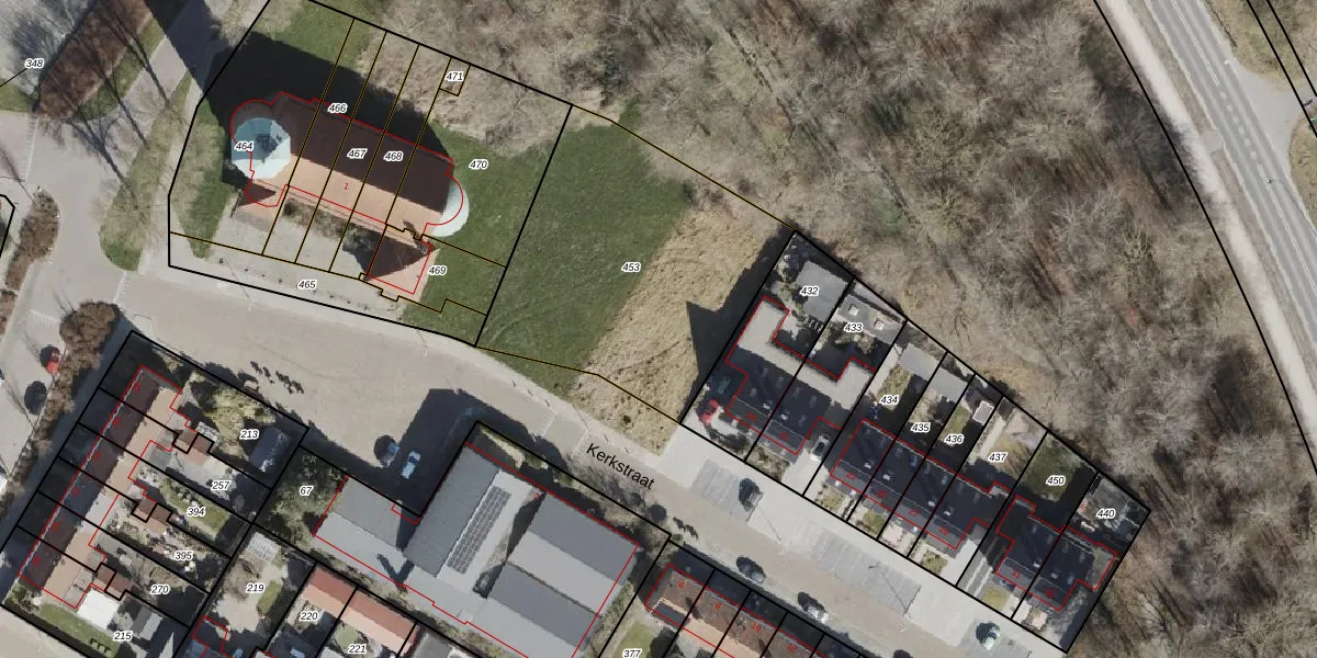 Het perceel waarop Kerkstraat 17 staat heeft een oppervlakte van 1296 m². Dit is een zeer groot perceel. De perceeloppervlakte wordt geregistreerd door het Kadaster. Gedetailleerde informatie over de maten van dit perceel kunt u vinden in het rapport Kadastrale kaart met maatvoering van Kerkstraat 17.