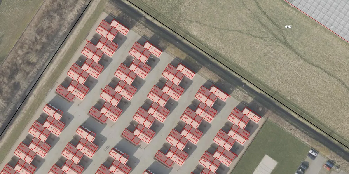 Het perceel waarop Kuinderweg 21-C29 staat heeft een oppervlakte van 3,5 ha. Dit is een zeer groot perceel. De perceeloppervlakte wordt geregistreerd door het Kadaster. Gedetailleerde informatie over de maten van dit perceel kunt u vinden in het rapport Kadastrale kaart met maatvoering van Kuinderweg 21-C29.