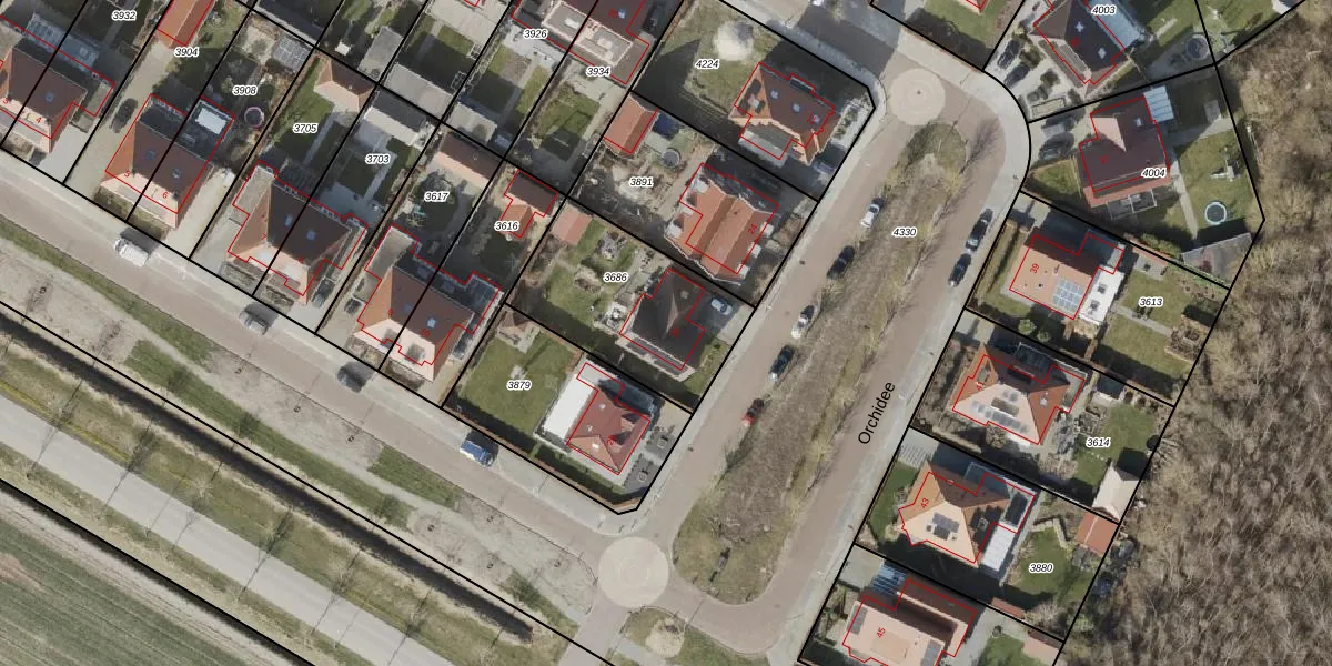 Het perceel waarop Orchidee 26 staat heeft een oppervlakte van 612 m². Dit is een groot perceel. De perceeloppervlakte wordt geregistreerd door het Kadaster. Gedetailleerde informatie over de maten van dit perceel kunt u vinden in het rapport Kadastrale kaart met maatvoering van Orchidee 26.