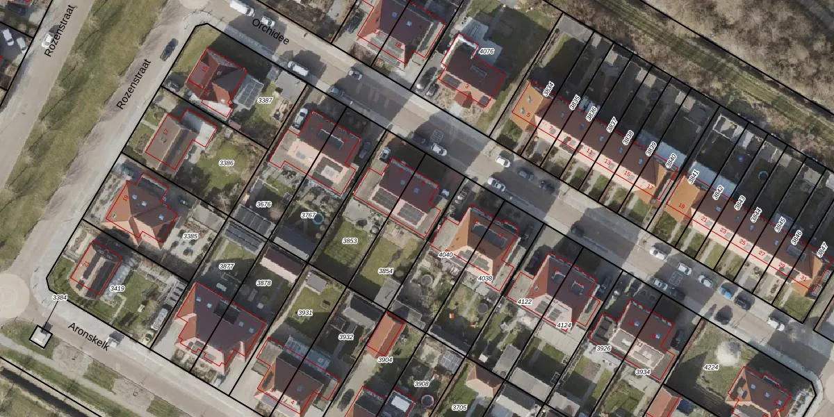 Het perceel waarop Orchidee 8 staat heeft een oppervlakte van 408 m². Dit is een groot perceel. De perceeloppervlakte wordt geregistreerd door het Kadaster. Gedetailleerde informatie over de maten van dit perceel kunt u vinden in het rapport Kadastrale kaart met maatvoering van Orchidee 8.