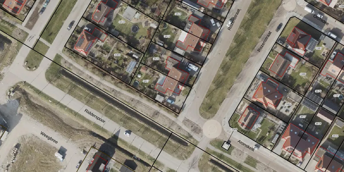 Gebruik de zoekbalk of klik op een perceel voor informatie over de adressen binnen dit perceel.