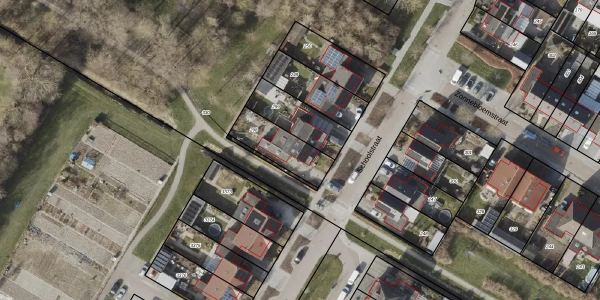 Het perceel waarop Schoolstraat 12 staat heeft een oppervlakte van 385 m². Dit is een groot perceel. De perceeloppervlakte wordt geregistreerd door het Kadaster. Gedetailleerde informatie over de maten van dit perceel kunt u vinden in het rapport Kadastrale kaart met maatvoering van Schoolstraat 12.