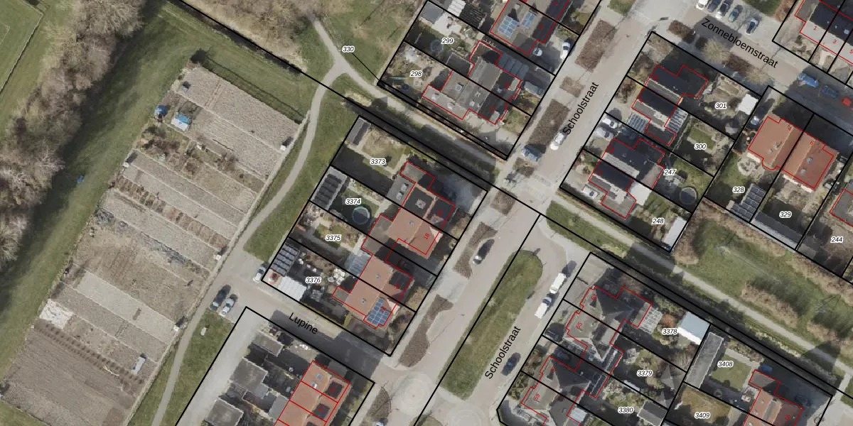 Schoolstraat 16 is gelegen op kadastraal perceel NOP00B3373. Deze kadastrale aanduiding is uniek en wordt gebruikt door het Kadaster om eigendomsrechten en andere zakelijke rechten vast te leggen. Het perceel maakt onderdeel uit van de kadastrale gemeente Noordoostpolder.