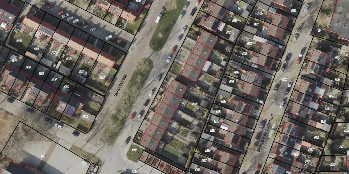 Het perceel waarop Schoolstraat 25 staat heeft een oppervlakte van 2371 m². Dit is een zeer groot perceel. De perceeloppervlakte wordt geregistreerd door het Kadaster. Gedetailleerde informatie over de maten van dit perceel kunt u vinden in het rapport Kadastrale kaart met maatvoering van Schoolstraat 25.
