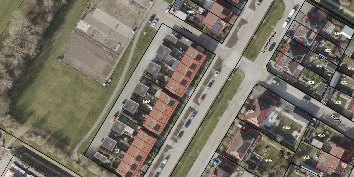 Het perceel waarop Schoolstraat 32 staat heeft een oppervlakte van 3035 m². Dit is een zeer groot perceel. De perceeloppervlakte wordt geregistreerd door het Kadaster. Gedetailleerde informatie over de maten van dit perceel kunt u vinden in het rapport Kadastrale kaart met maatvoering van Schoolstraat 32.