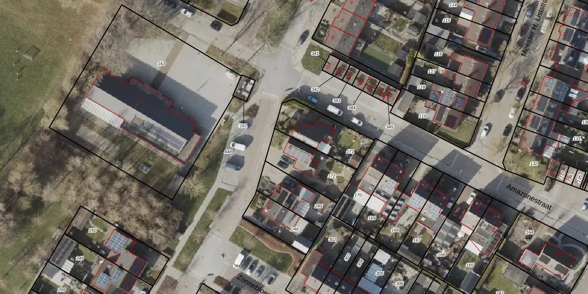 Gebruik de zoekbalk of klik op een perceel voor informatie over de adressen binnen dit perceel.