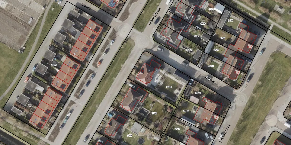 Gebruik de zoekbalk of klik op een perceel voor informatie over de adressen binnen dit perceel.