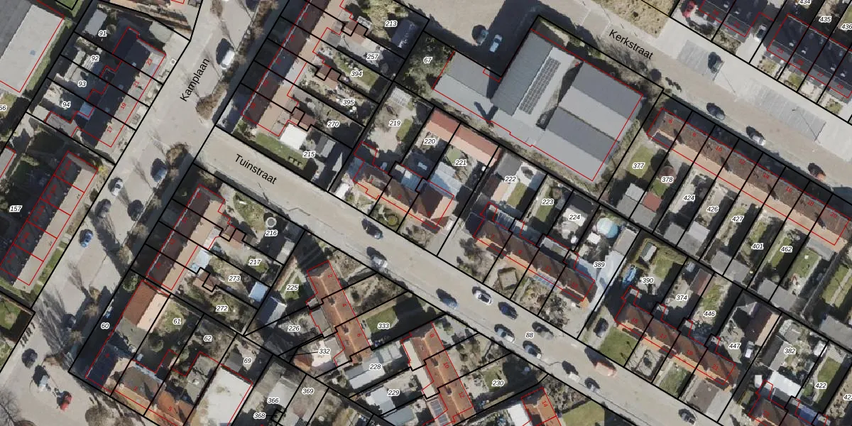 Gebruik de zoekbalk of klik op een perceel voor informatie over de adressen binnen dit perceel.