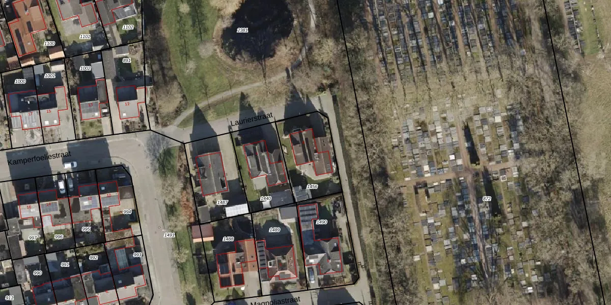 Het perceel waarop Laurierstraat 6 staat heeft een oppervlakte van 451 m². Dit is een groot perceel. De perceeloppervlakte wordt geregistreerd door het Kadaster. Gedetailleerde informatie over de maten van dit perceel kunt u vinden in het rapport Kadastrale kaart met maatvoering van Laurierstraat 6.