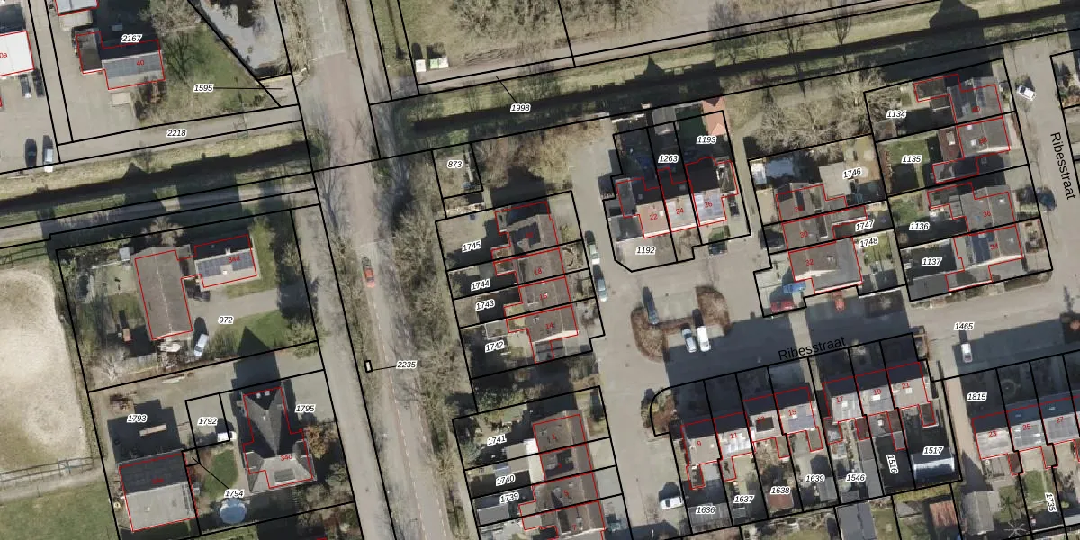 Ribesstraat 18 is gelegen op kadastraal perceel HDB01U1744. Deze kadastrale aanduiding is uniek en wordt gebruikt door het Kadaster om eigendomsrechten en andere zakelijke rechten vast te leggen. Het perceel maakt onderdeel uit van de kadastrale gemeente Ambt-Hardenberg.