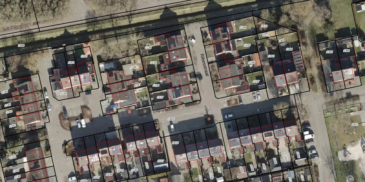 Het perceel waarop Ribesstraat 34 staat heeft een oppervlakte van 269 m². Dit is een middelgroot perceel. De perceeloppervlakte wordt geregistreerd door het Kadaster. Gedetailleerde informatie over de maten van dit perceel kunt u vinden in het rapport Kadastrale kaart met maatvoering van Ribesstraat 34.