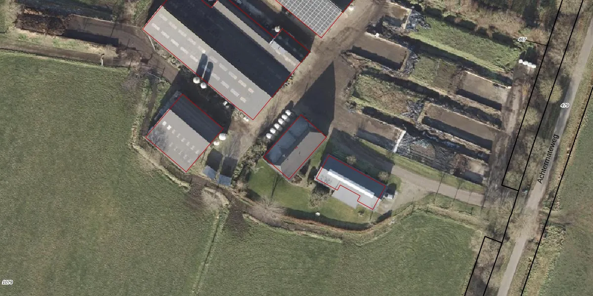 Het perceel waarop Achtermateweg 2 staat heeft een oppervlakte van 9,4 ha. Dit is een zeer groot perceel. De perceeloppervlakte wordt geregistreerd door het Kadaster. Gedetailleerde informatie over de maten van dit perceel kunt u vinden in het rapport Kadastrale kaart met maatvoering van Achtermateweg 2.