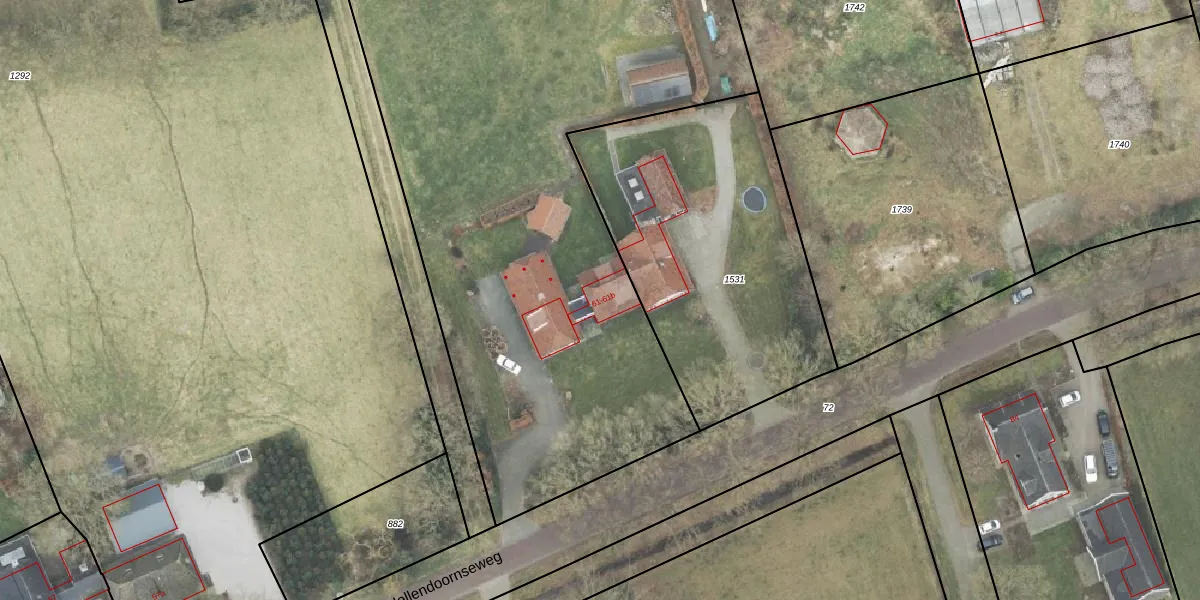 Het perceel waarop Hellendoornseweg 61-b staat heeft een oppervlakte van 1,4 ha. Dit is een zeer groot perceel. De perceeloppervlakte wordt geregistreerd door het Kadaster. Gedetailleerde informatie over de maten van dit perceel kunt u vinden in het rapport Kadastrale kaart met maatvoering van Hellendoornseweg 61-b.