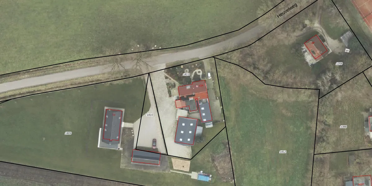 Heuvelweg 11 is gelegen op kadastraal perceel RTE00R1811. Deze kadastrale aanduiding is uniek en wordt gebruikt door het Kadaster om eigendomsrechten en andere zakelijke rechten vast te leggen. Het perceel maakt onderdeel uit van de kadastrale gemeente Raalte.