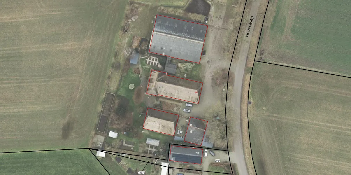 Het perceel waarop Heuvelweg 48 staat heeft een oppervlakte van 5,7 ha. Dit is een zeer groot perceel. De perceeloppervlakte wordt geregistreerd door het Kadaster. Gedetailleerde informatie over de maten van dit perceel kunt u vinden in het rapport Kadastrale kaart met maatvoering van Heuvelweg 48.