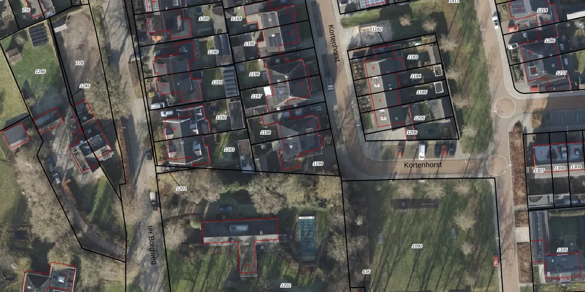 Het perceel waarop Kortenhorst 1 staat heeft een oppervlakte van 360 m². Dit is een groot perceel. De perceeloppervlakte wordt geregistreerd door het Kadaster. Gedetailleerde informatie over de maten van dit perceel kunt u vinden in het rapport Kadastrale kaart met maatvoering van Kortenhorst 1.