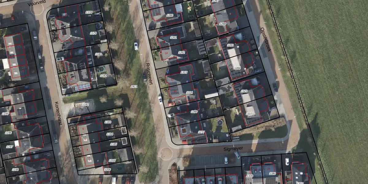 Het perceel waarop Roseweert 10 staat heeft een oppervlakte van 323 m². Dit is een groot perceel. De perceeloppervlakte wordt geregistreerd door het Kadaster. Gedetailleerde informatie over de maten van dit perceel kunt u vinden in het rapport Kadastrale kaart met maatvoering van Roseweert 10.