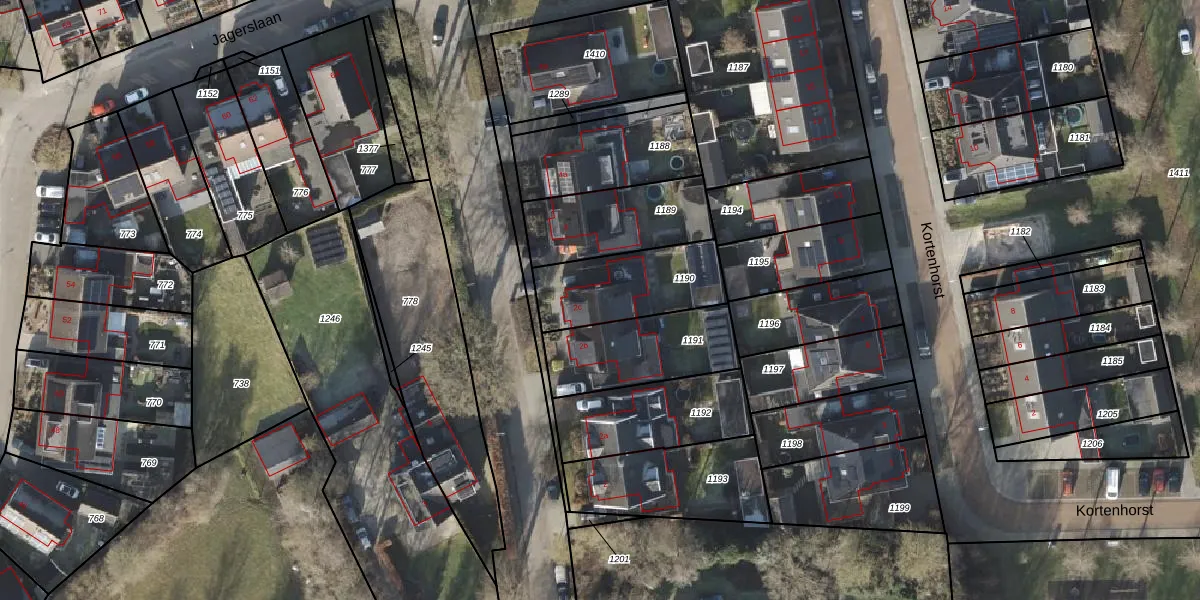 Gebruik de zoekbalk of klik op een perceel voor informatie over de adressen binnen dit perceel.