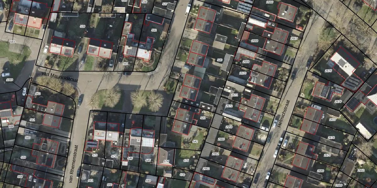 Het perceel waarop van Maurickstraat 13 staat heeft een oppervlakte van 1575 m². Dit is een zeer groot perceel. De perceeloppervlakte wordt geregistreerd door het Kadaster. Gedetailleerde informatie over de maten van dit perceel kunt u vinden in het rapport Kadastrale kaart met maatvoering van van Maurickstraat 13.
