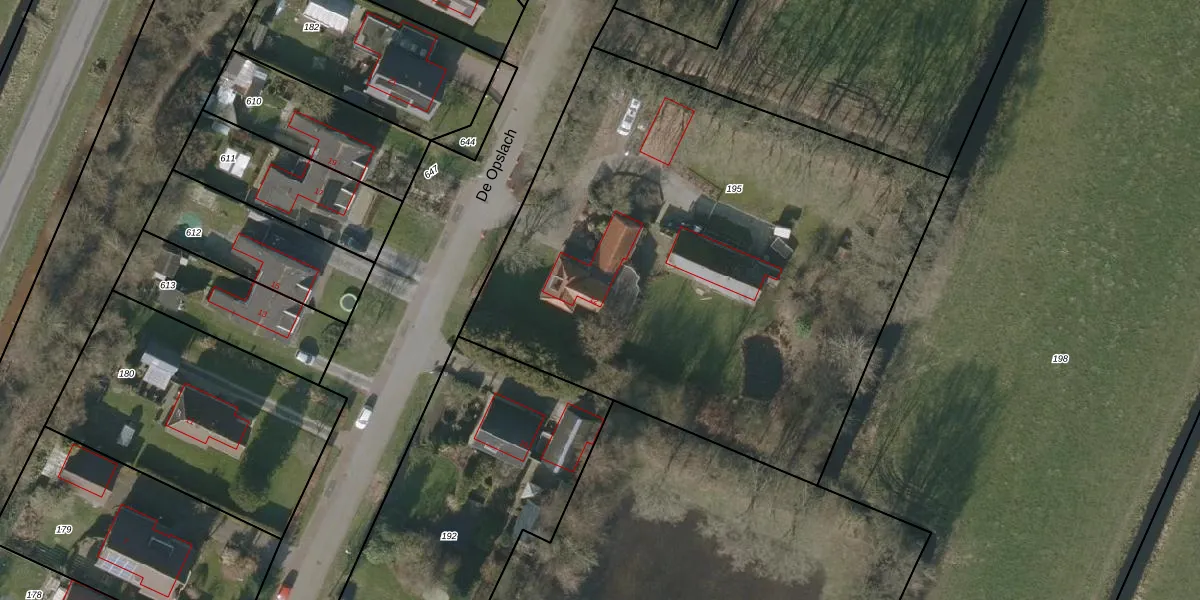 De Opslach 12 is gelegen op kadastraal perceel LGZ00G195. Deze kadastrale aanduiding is uniek en wordt gebruikt door het Kadaster om eigendomsrechten en andere zakelijke rechten vast te leggen. Het perceel maakt onderdeel uit van de kadastrale gemeente Langezwaag.