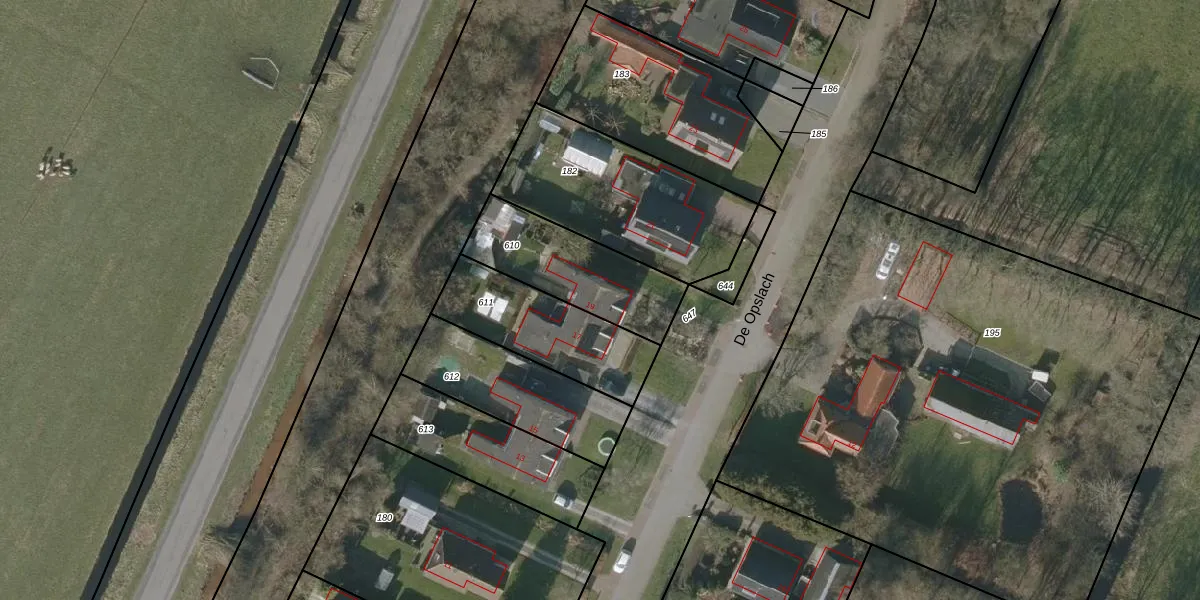 Het perceel waarop De Opslach 19 staat heeft een oppervlakte van 409 m². Dit is een groot perceel. De perceeloppervlakte wordt geregistreerd door het Kadaster. Gedetailleerde informatie over de maten van dit perceel kunt u vinden in het rapport Kadastrale kaart met maatvoering van De Opslach 19.