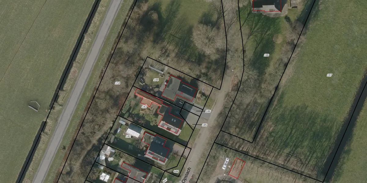 De Opslach 25 is gelegen op kadastraal perceel LGZ00G184. Deze kadastrale aanduiding is uniek en wordt gebruikt door het Kadaster om eigendomsrechten en andere zakelijke rechten vast te leggen. Het perceel maakt onderdeel uit van de kadastrale gemeente Langezwaag.