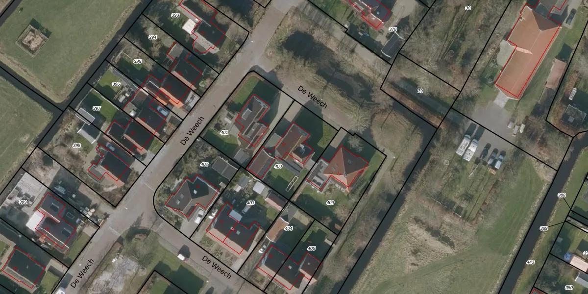 Het perceel waarop De Weech 15 staat heeft een oppervlakte van 530 m². Dit is een groot perceel. De perceeloppervlakte wordt geregistreerd door het Kadaster. Gedetailleerde informatie over de maten van dit perceel kunt u vinden in het rapport Kadastrale kaart met maatvoering van De Weech 15.
