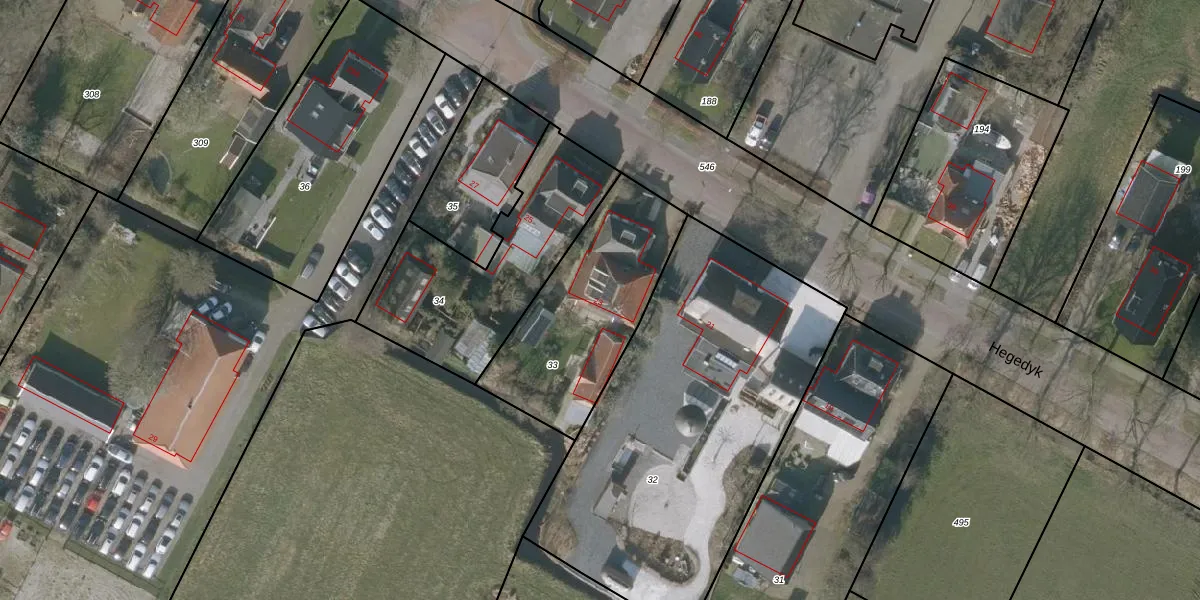 Hegedyk 23 is gelegen op kadastraal perceel LGZ00H33. Deze kadastrale aanduiding is uniek en wordt gebruikt door het Kadaster om eigendomsrechten en andere zakelijke rechten vast te leggen. Het perceel maakt onderdeel uit van de kadastrale gemeente Langezwaag.