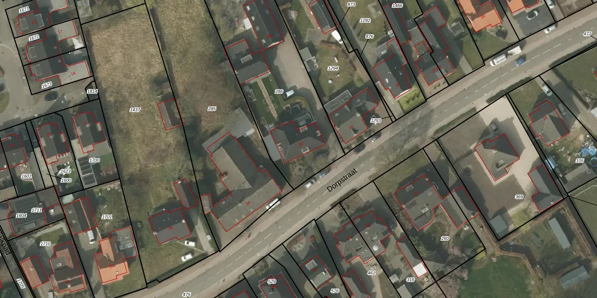 Het perceel waarop Dorpstraat 30 staat heeft een oppervlakte van 1875 m². Dit is een zeer groot perceel. De perceeloppervlakte wordt geregistreerd door het Kadaster. Gedetailleerde informatie over de maten van dit perceel kunt u vinden in het rapport Kadastrale kaart met maatvoering van Dorpstraat 30.