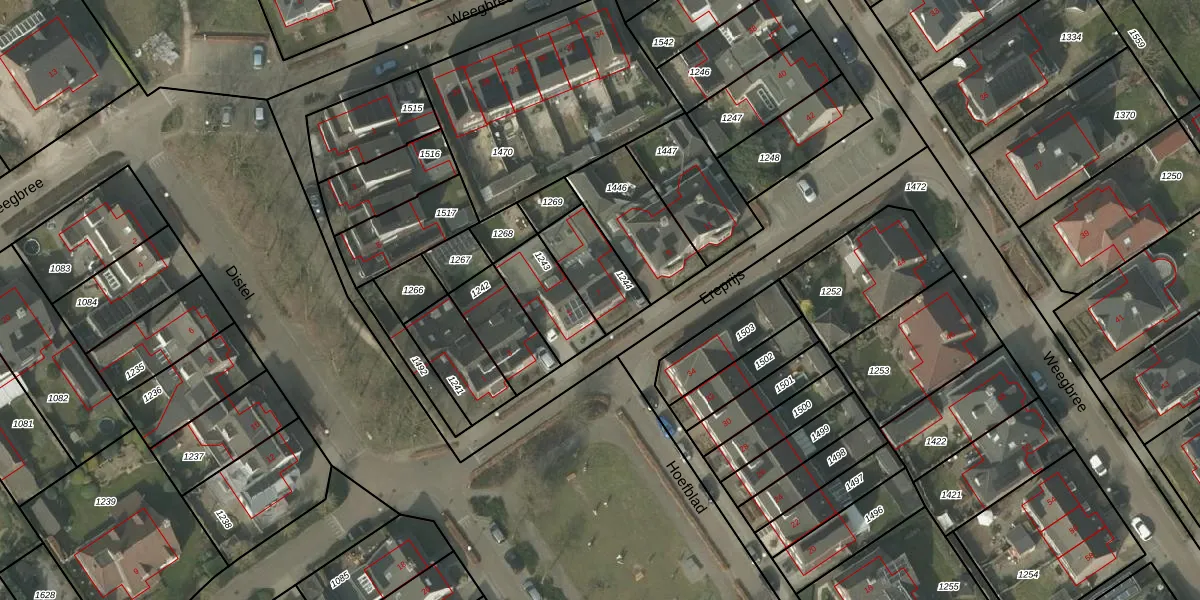Het perceel waarop Ereprijs 7 staat heeft een oppervlakte van 184 m². Dit is een middelgroot perceel. De perceeloppervlakte wordt geregistreerd door het Kadaster. Gedetailleerde informatie over de maten van dit perceel kunt u vinden in het rapport Kadastrale kaart met maatvoering van Ereprijs 7.