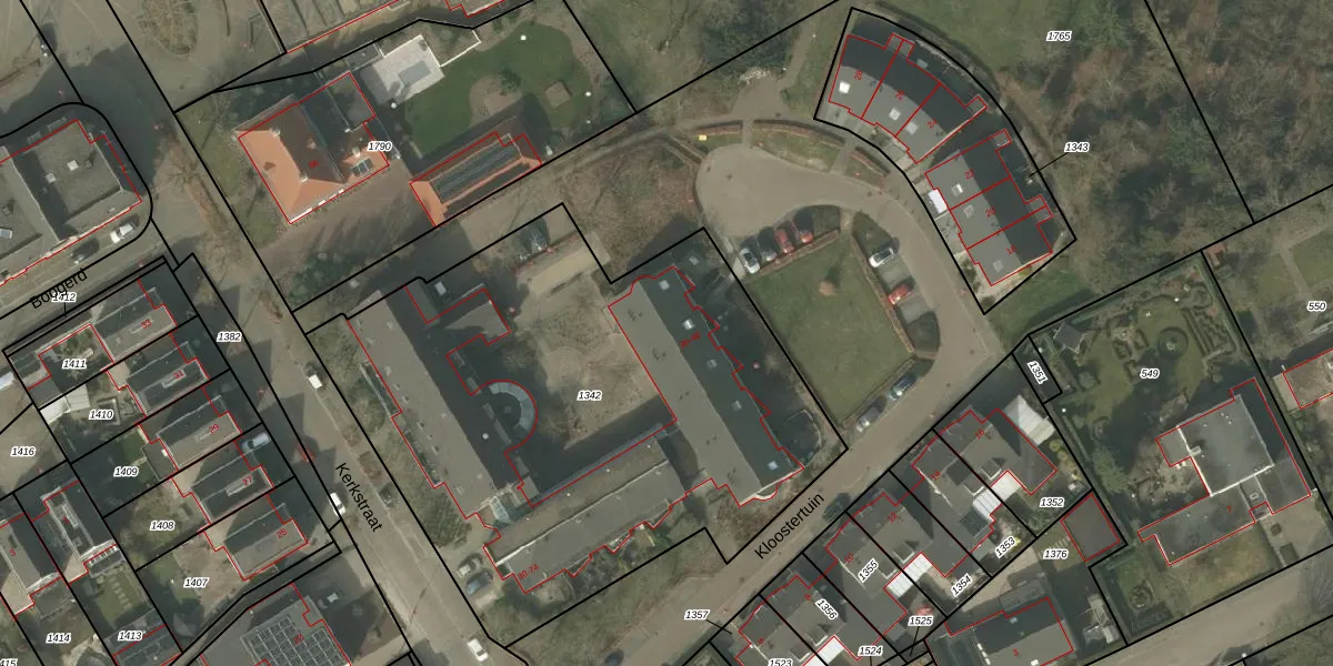 Het perceel waarop Kerkstraat 72 staat heeft een oppervlakte van 3065 m². Dit is een zeer groot perceel. De perceeloppervlakte wordt geregistreerd door het Kadaster. Gedetailleerde informatie over de maten van dit perceel kunt u vinden in het rapport Kadastrale kaart met maatvoering van Kerkstraat 72.